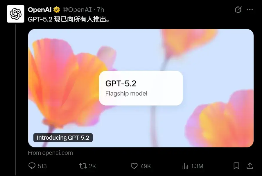 OpenAI 于 2025 年 12 月 11 日(OpenAI十周年的日子)正式发布 GPT-5.2,这是其 GPT-5 系列的最新迭代版本,被定位为“专业知识工作领域最强大的模型系列”。