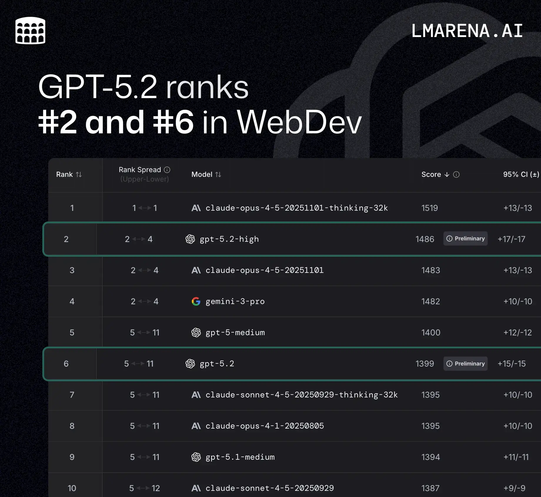 距离上次GPT-5.1的发布仅仅过去1月的时间,之所以这么快的发布主要是为了应对谷歌 Gemini 3 的强力竞争,OpenAI 内部甚至一度进入“红色警戒(Code Red)”状态来加速迭代。
