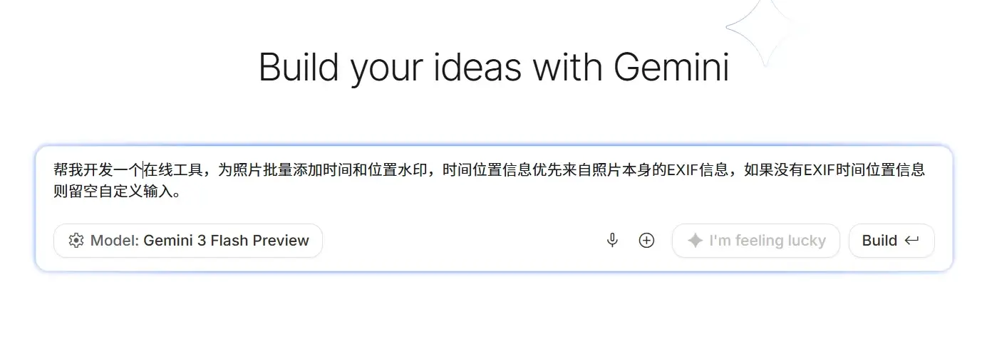 我打开了Google AI Studio ,点进它的Build with Code Apps 功能,一键从代码到应用。在对话描述了我的需求。