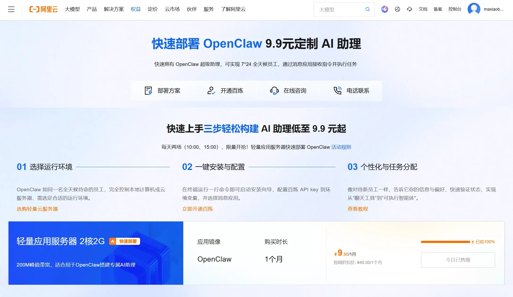 那就是云服务器部署~我们以阿里云为例,一台轻量元服务器只需要9.9元(每天上午抢),就算你没有抢到,也就十几块钱。