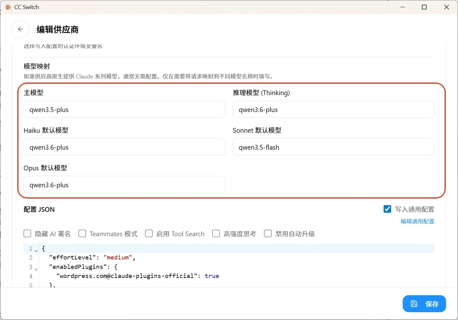 然后选择你需要的模型,复制模型ID,填在模型映射一栏,他们分别代替Claude 的一些默认模型。
