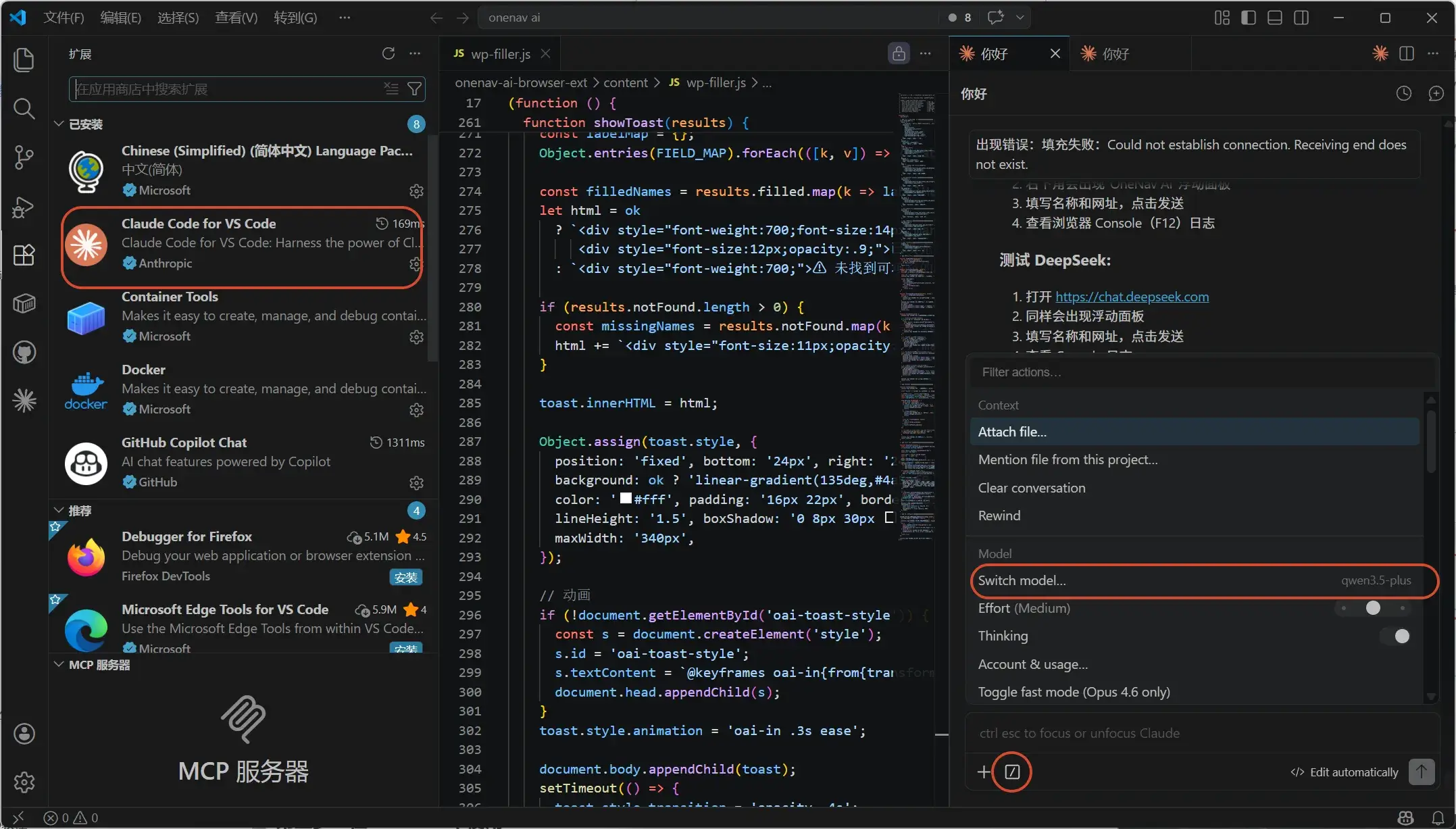 我这里用的VS Code 中的Claude Code ,安装Claude Code插件,你的Claude Code插件 就用的是千问大模型了。