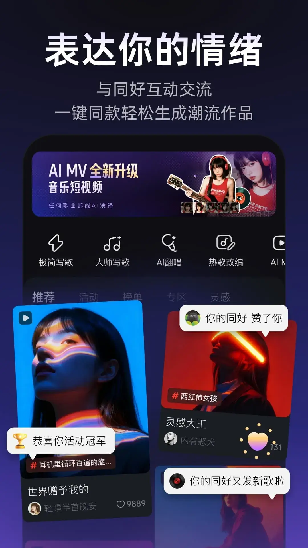 用户可通过歌曲及一张照片自动生成动态音乐视频(视具体版本支持情况而定)。
