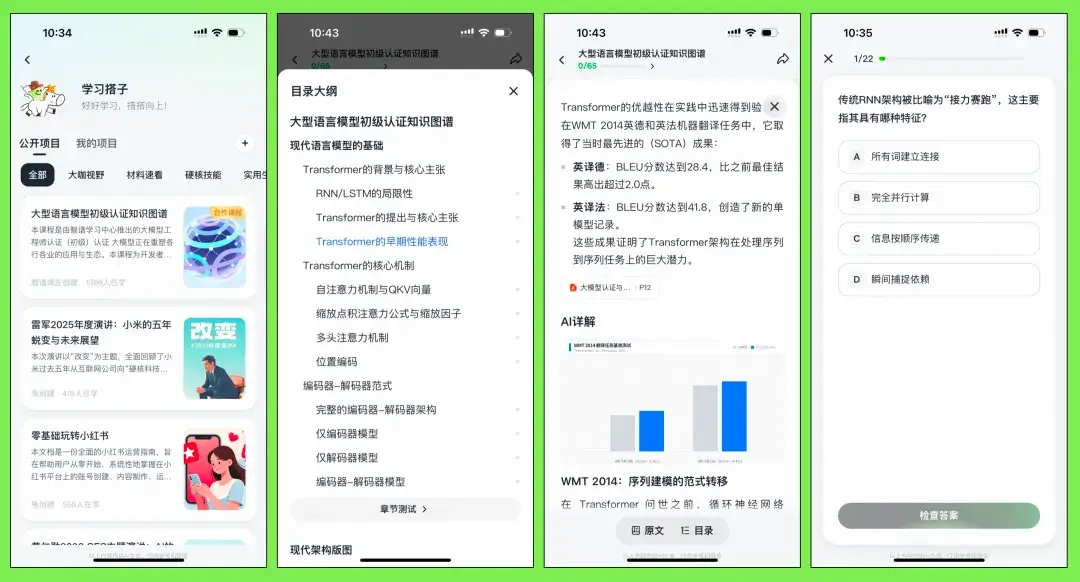 这个功能能将上传的学习资料(PDF、PPT、文档等)自动转化为包含知识图谱、交互演示和测试的完整学习项目。