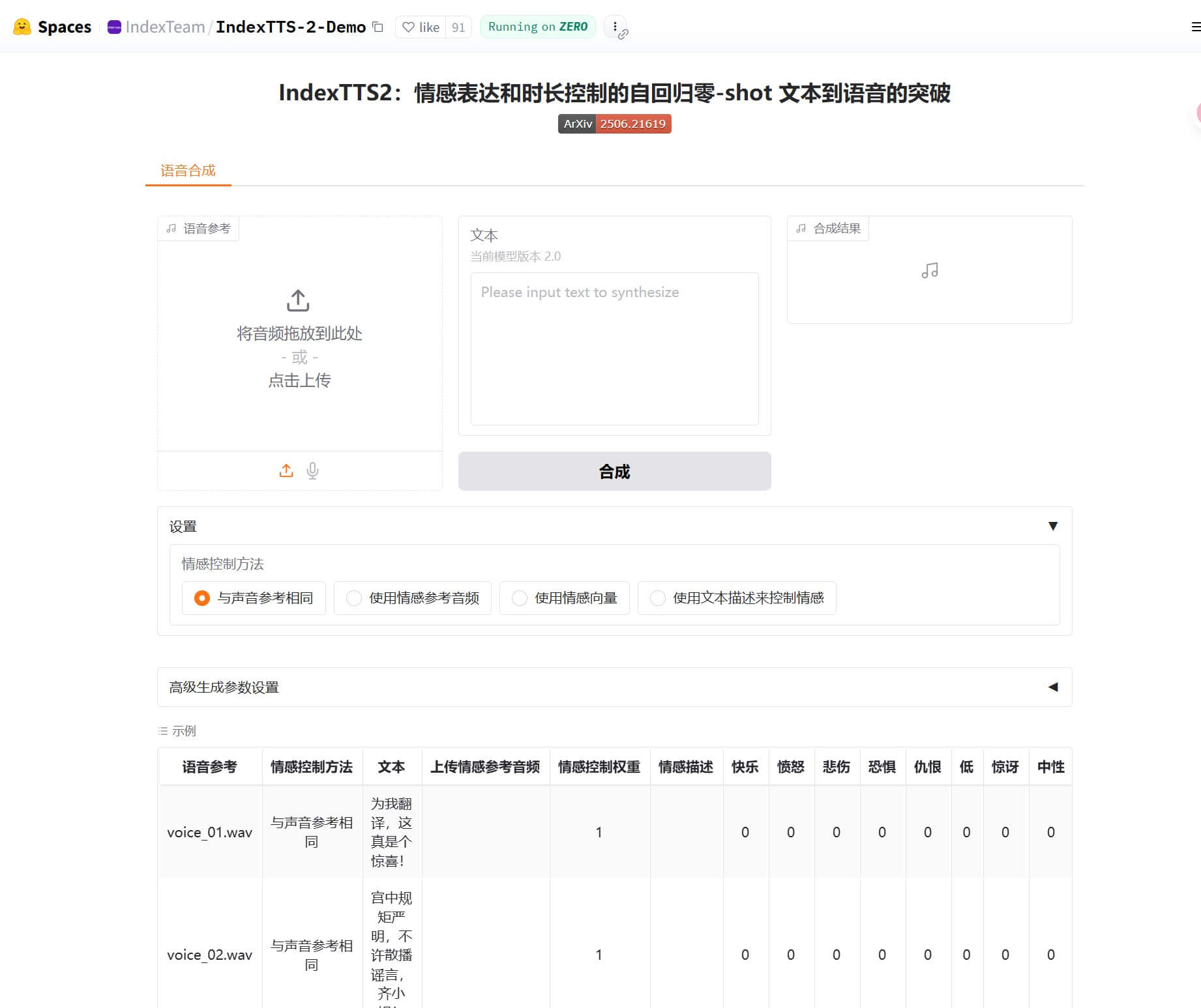 演示页面:https://index-tts.github.io/index-tts2.github.io/