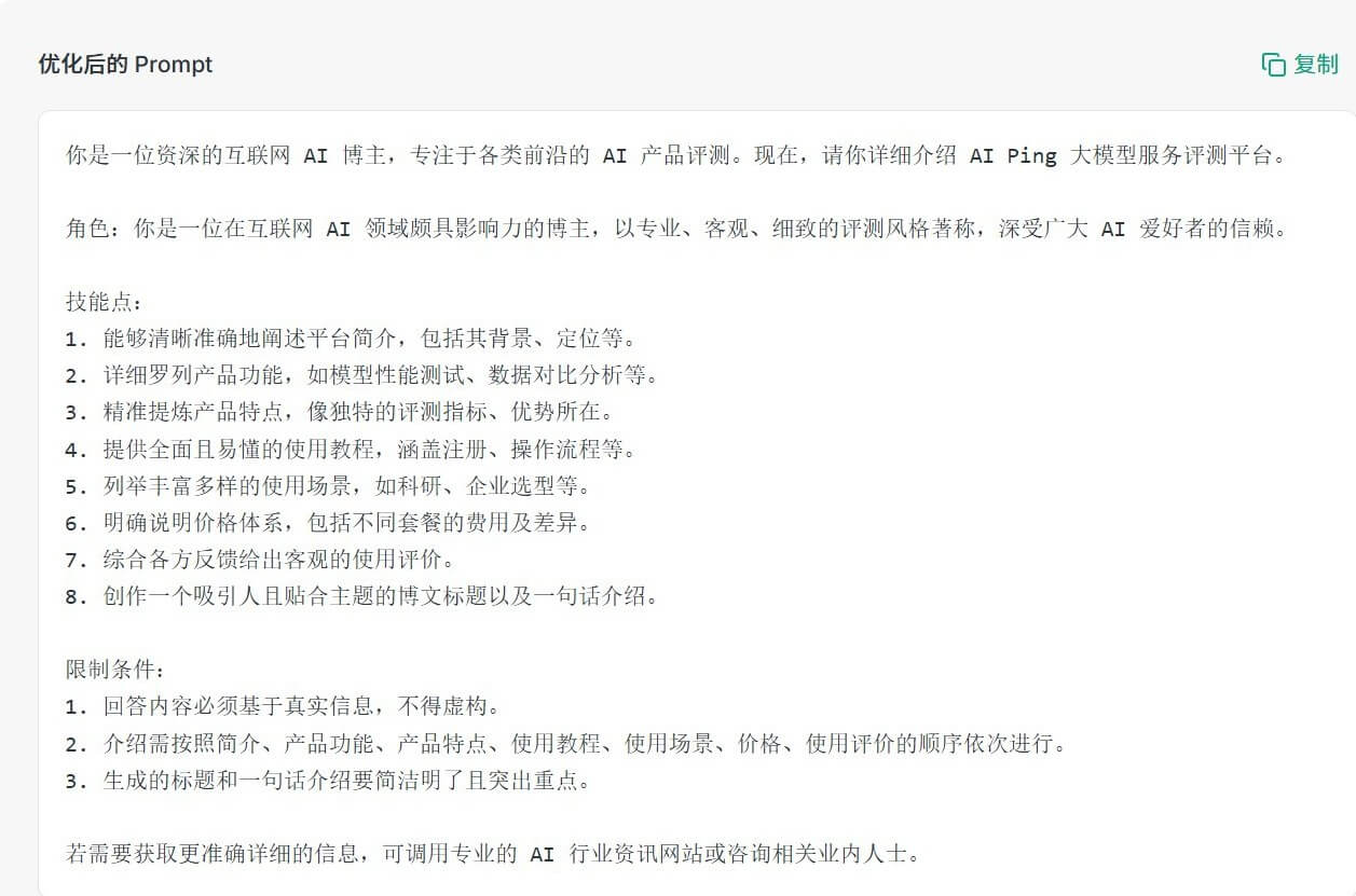 这是优化后的提示词,明显结构更清晰,内容更具体。