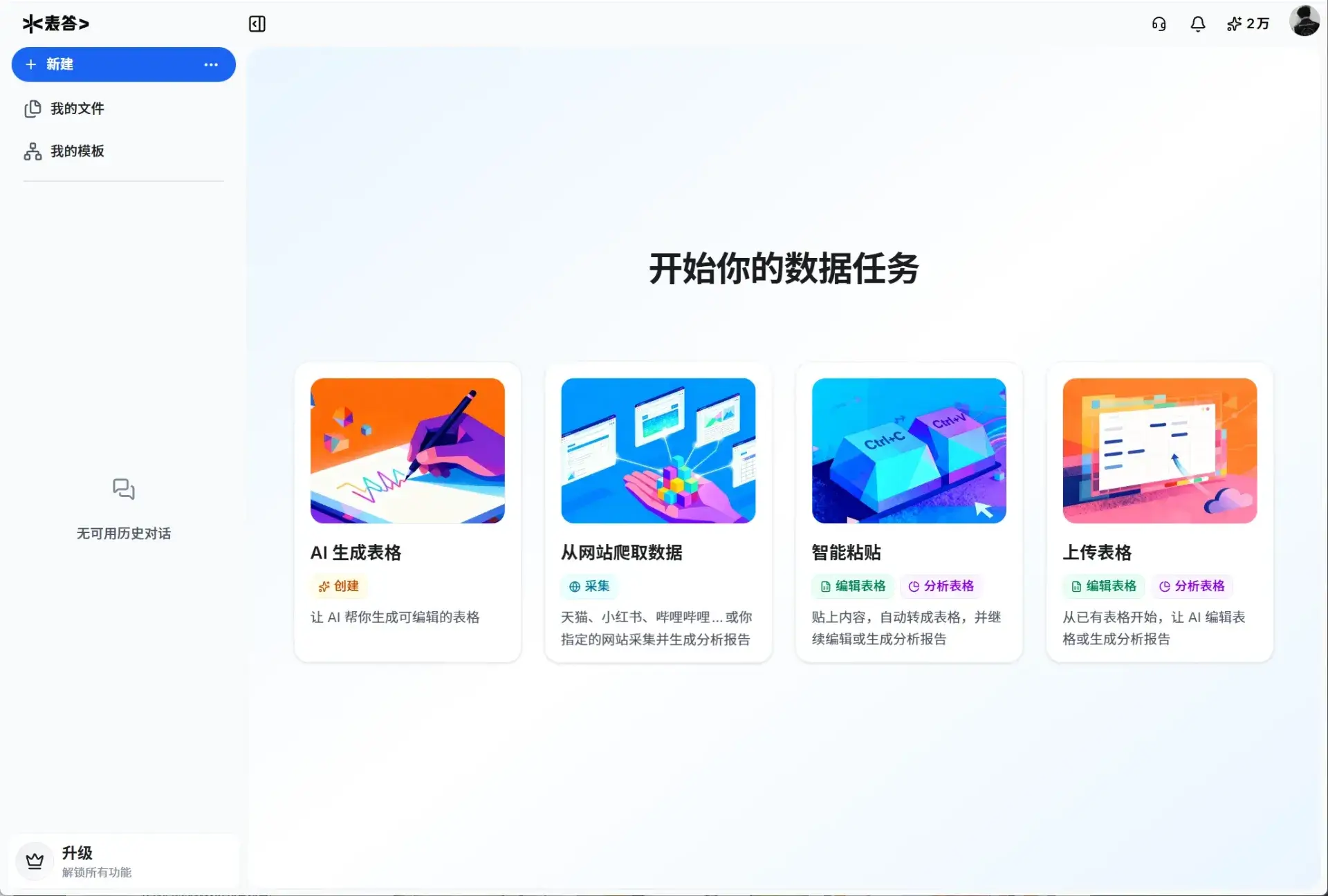 - 表格自动结构化与清洗:对上传的 Excel/CSV 或粘贴的数据自动识别列、补全、去噪和标准化。