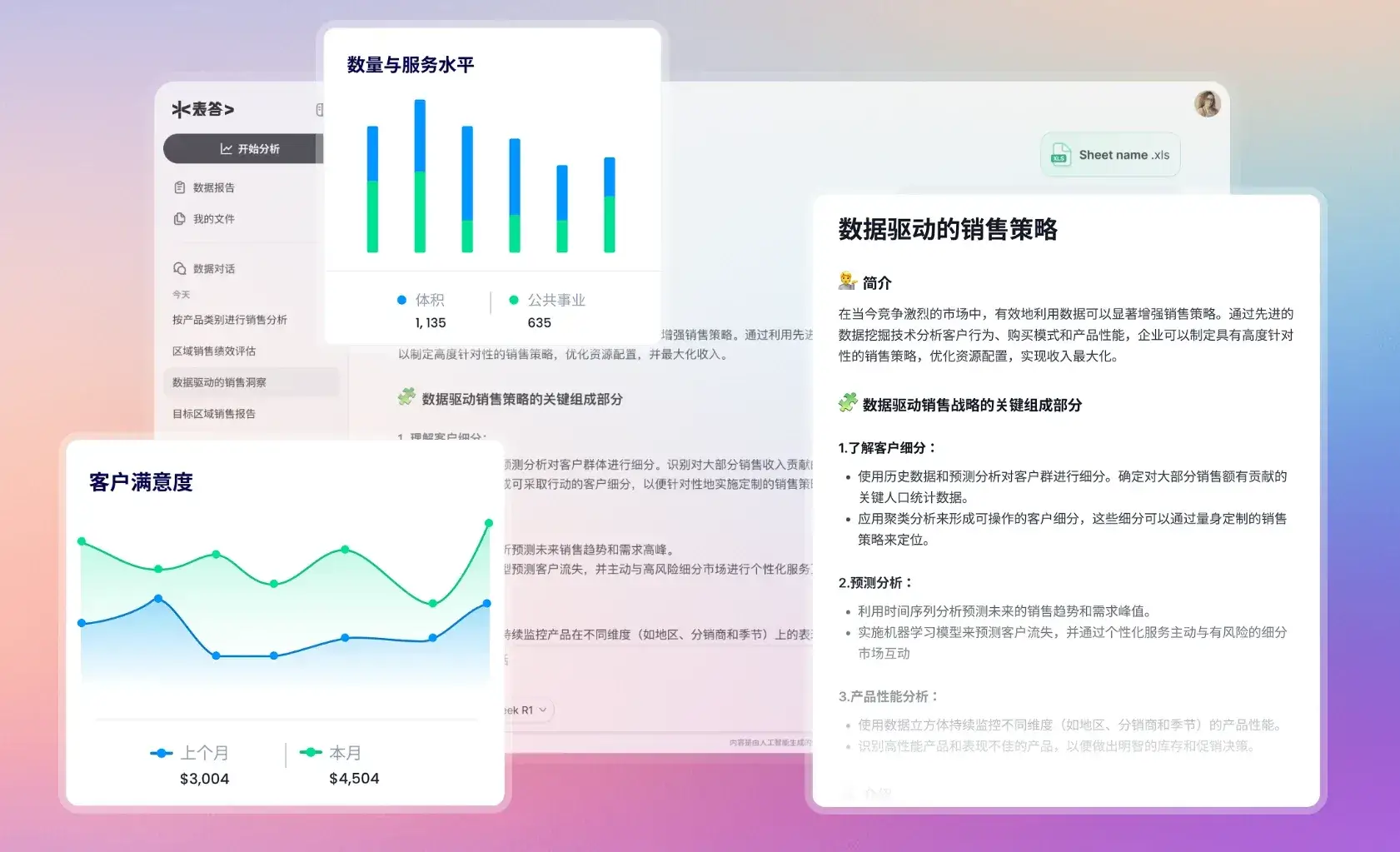 用户只需上传表格文件,并提出分析需求,就会自动生成可追溯的分析报告,帮助市场、销售、运营和财务等人员从海量数据中提取有价值的洞见。