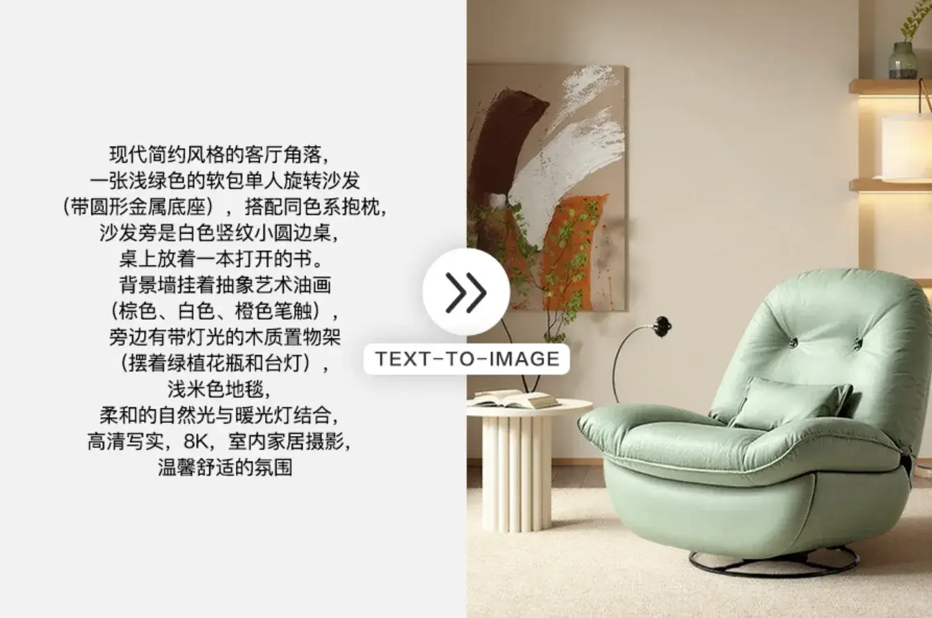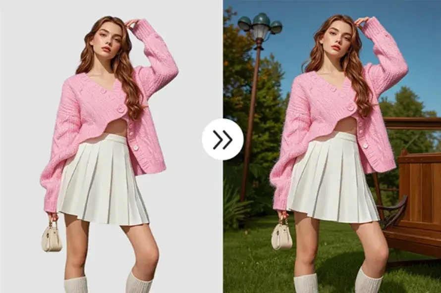 自动识别人物主体,根据文本描述(如“阳光沙滩”“都市夜景”)或上传参图,智能生成匹配背景。轻松切换节日主题、季节氛围、品牌调性场景,提升视觉吸引力。