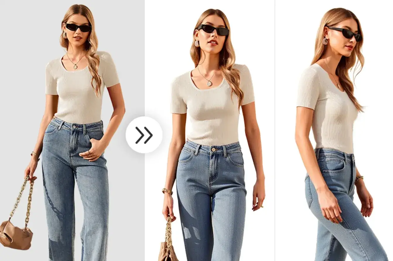 输入模特图 + 姿势图,即可生成人脸一致、服装一致、多姿势的模特组图。适用于电商主图、详情页展示、Lookbook制作,彻底摆脱模特档期与费用限制。
