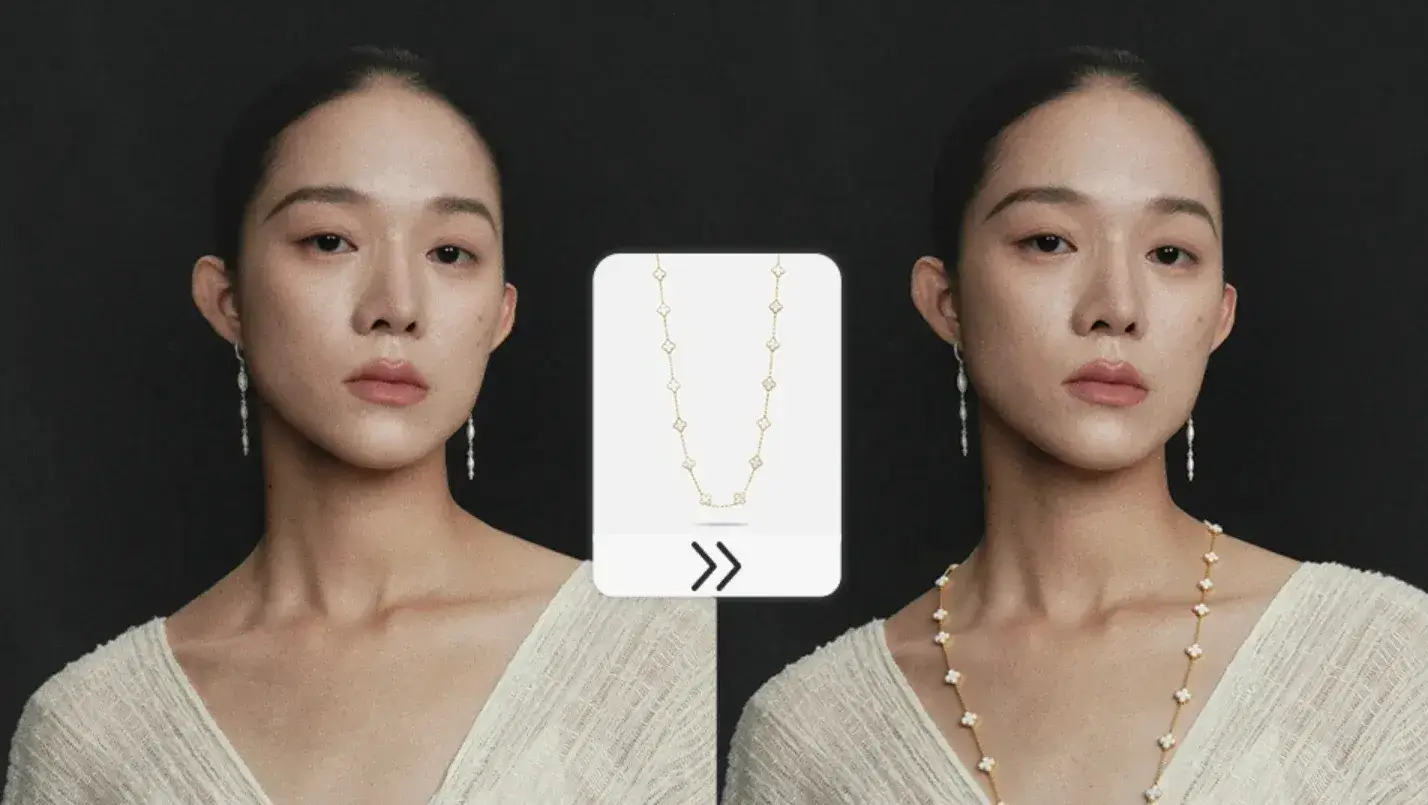 项链、帽子、腰带腰链、眼镜墨镜等配饰一键试戴。AI智能匹配佩戴位置、透视关系与光影色调,生成自然逼真的佩戴效果图,适用于饰品详情页与社交媒体种草。