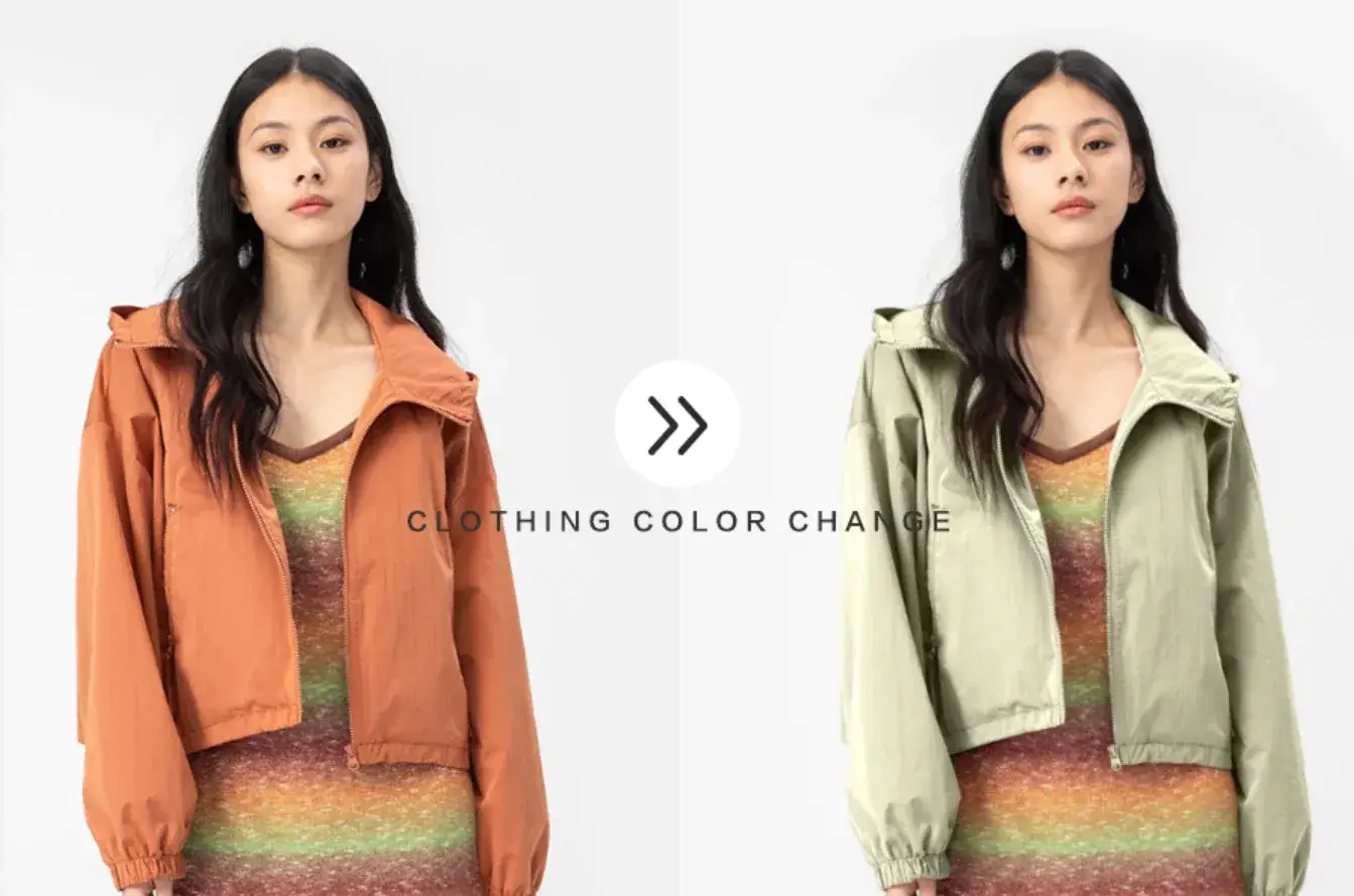 在不改变模特、背景、款式前提下,实现局部或整体换色。支持莫兰迪色、荧光色、渐变色等复杂色彩替换,快速生成“同款多色”商品图,提升SKU展示效率。