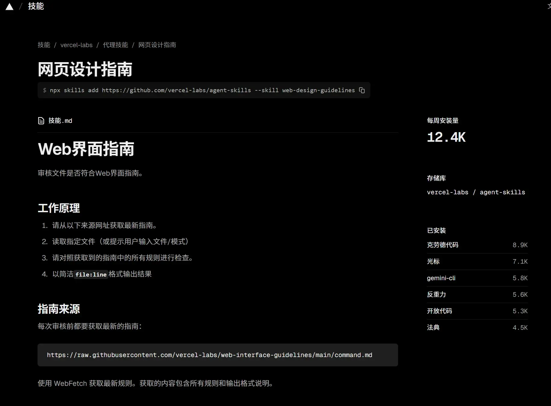 它配套有一个命令行工具(skills / add-skill),可一键安装到各种代码/开发类 AI agent 中。