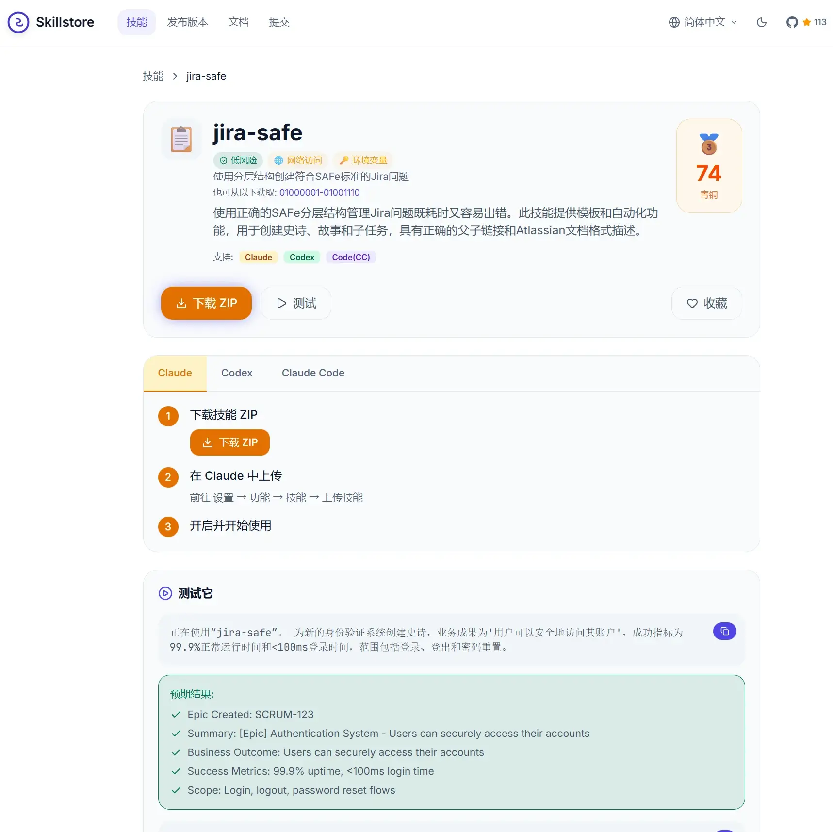 - 安全审计与质量评分:每个 skill 有自动化的安全审计记录、质量分(Architecture / Maintainability / Content / Security 等维度),便于团队选型。