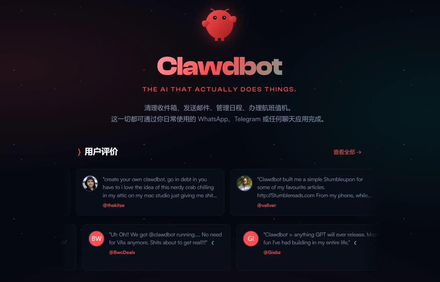 Clawdbot 是一个最近非常火爆的开源项目,它是一个可自托管的个人 AI 助手,不仅会聊天,还能替你清理收件箱、发邮件、管理日历、在网页上自动操作等,并且可以通过你已经在用的聊天工具(WhatsApp / Telegram / Discord / iMessage 等)与它交互。