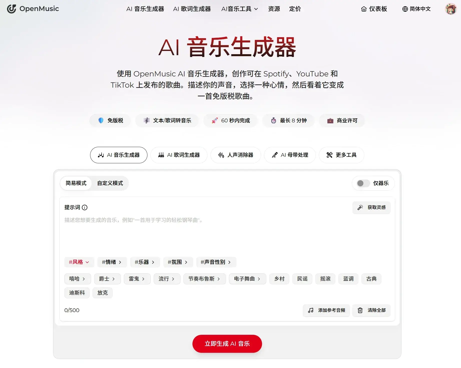 OpenMusic.ai 是一个面向普通创作者、独立音乐人、内容团队和商业用户的 AI 音乐创作平台。