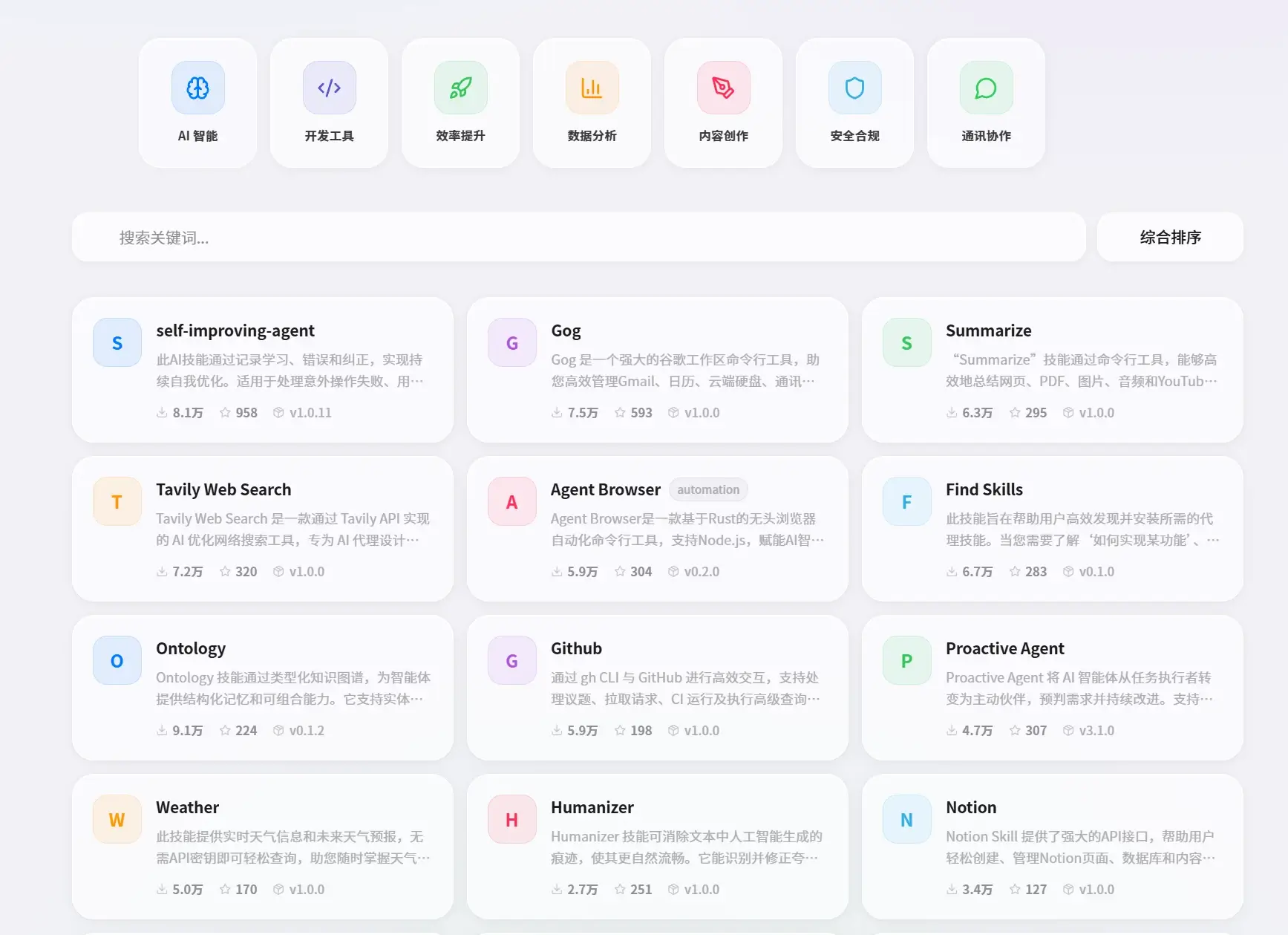SkillHub 还将这1.3万个 Skills 进行了深度中文优化,提供中文搜索分类,中文简介。