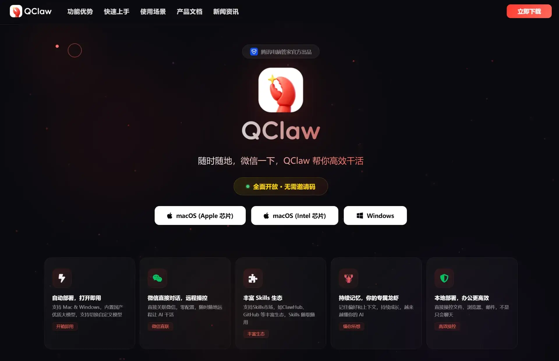QClaw 的本质是OpenClaw的精装版一键部署工具,让本是极客才能拥有极其复杂的OpenClaw,变得让普通用户也能直接“领包入住”。