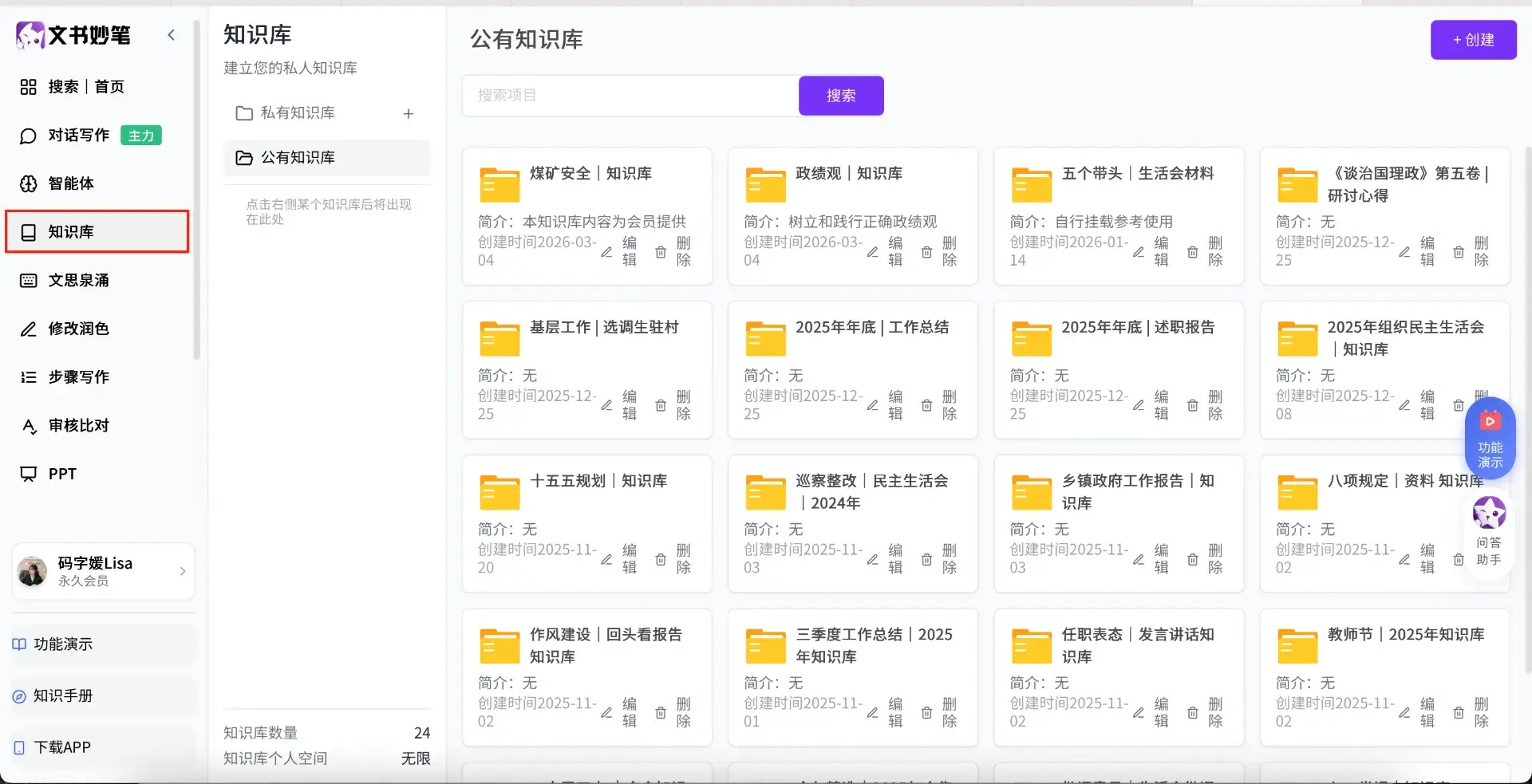 4,知识库:支持自建单位和个人知识库,写出来结合实际的材料。