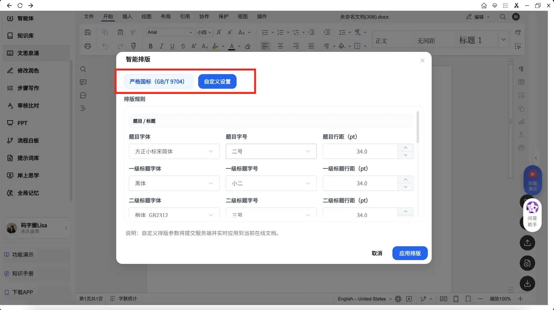 9,一键排版:支持2种公文排版模式,支持自己设置排版规则。