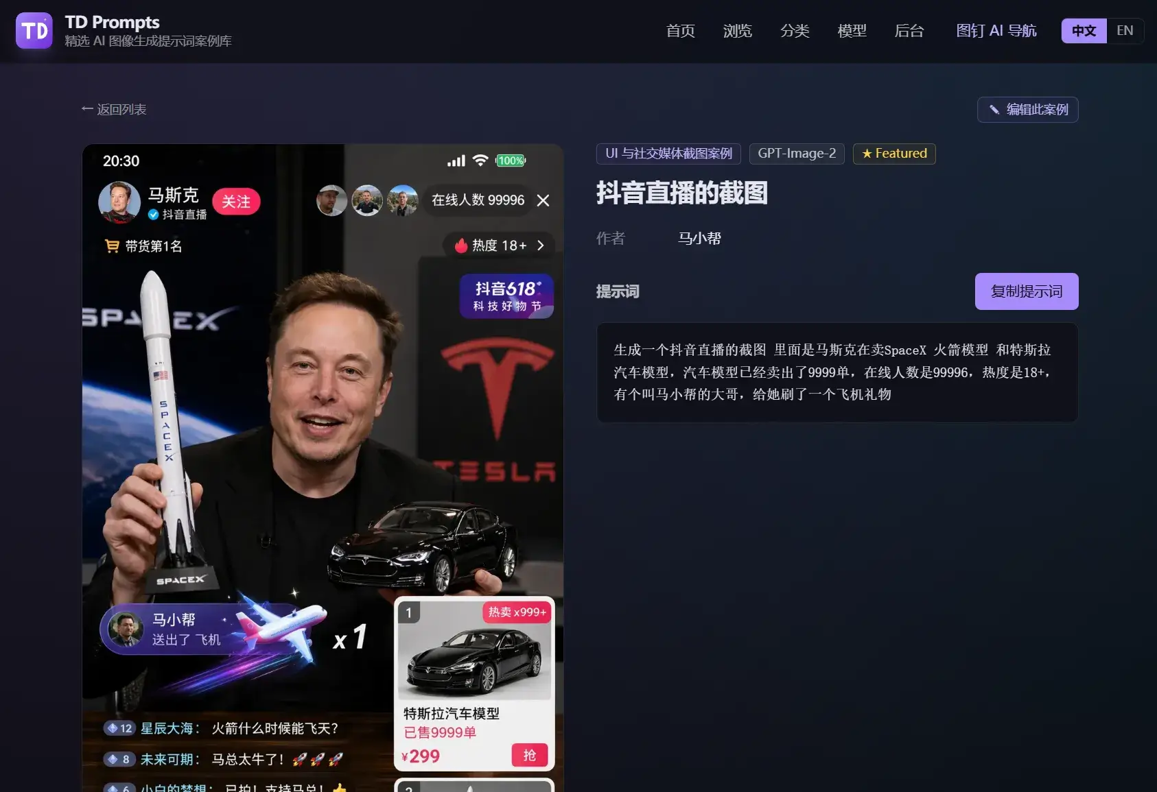 所有案例都支持中英文提示词,可一键复制。